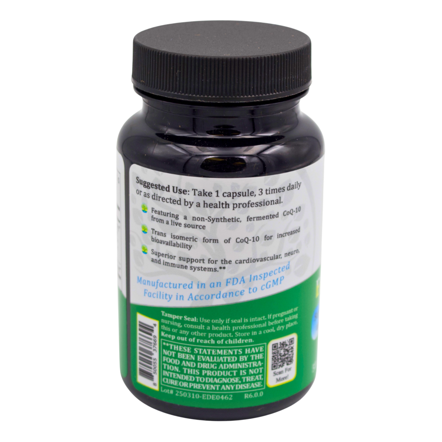 Edens CoQ-10 features a live-source, fermented form of Coenzyme Q-10 (ubiquinone), providing a highly bioavailable, naturally occurring nutrient that supports cellular energy processes and antioxidant activity.* This premium formula delivers CoQ-10 in its preferred trans-isomeric, fat-soluble form, allowing for optimal absorption.